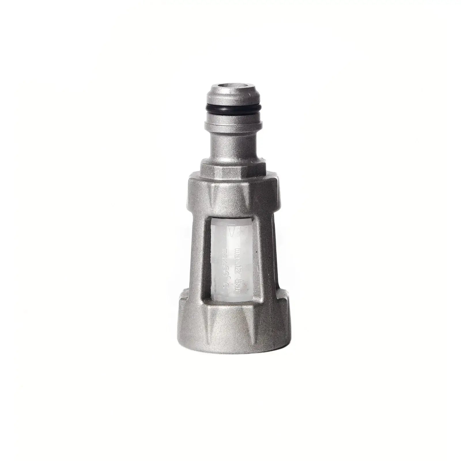 Der AVA Wasseranschluss mit Filter ist aus Metall gefertigt und schützt den Hochdruckreiniger vor Partikeln, die sich im Wasser befinden können und sorgt somit für eine längere Lebensdauer des AVA Hochdruckreinigers.