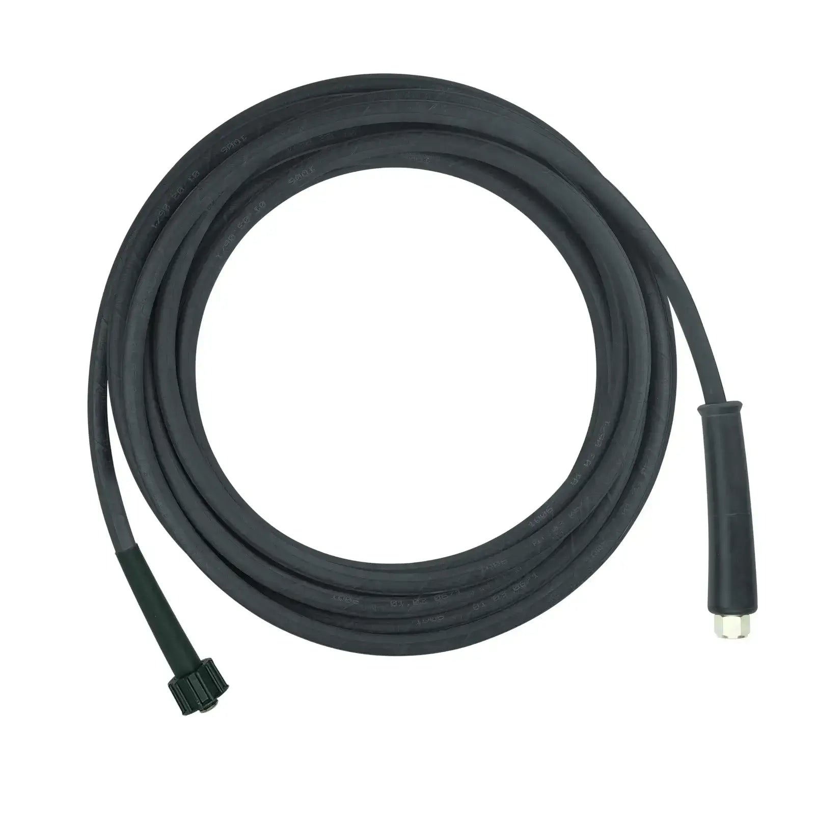 Dazu gehört ein 8 m langer, stahlverstärkter Hochdruckschlauch, der eine hohe Flexibilität und Widerstandsfähigkeit bietet und nicht knickt. Die hohe Druckbeständigkeit des Schlauchs sorgt dafür, dass selbst bei maximalem Druck keine Undichtigkeiten auftreten.