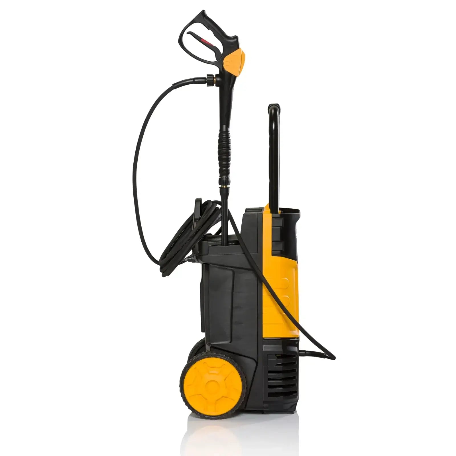 Mit einem maximalen Arbeitsdruck von 150 bar und einem beeindruckenden Wasserdurchfluss von bis zu 530 l/h beseitigt dieser Hochdruckreiniger selbst hartnäckigste Verschmutzungen auf Terrassen, Fahrzeugen und anderen Oberflächen mühelos.